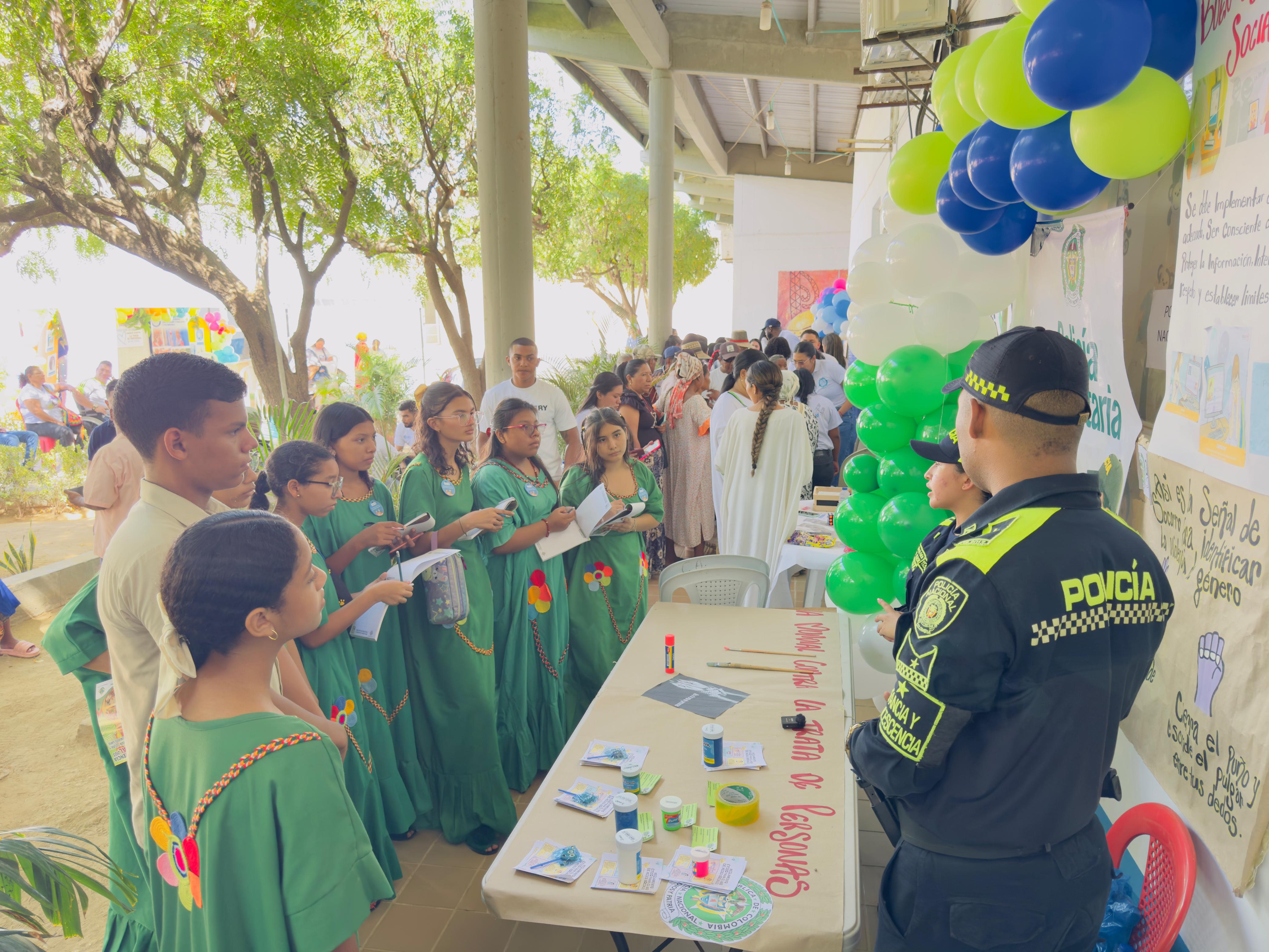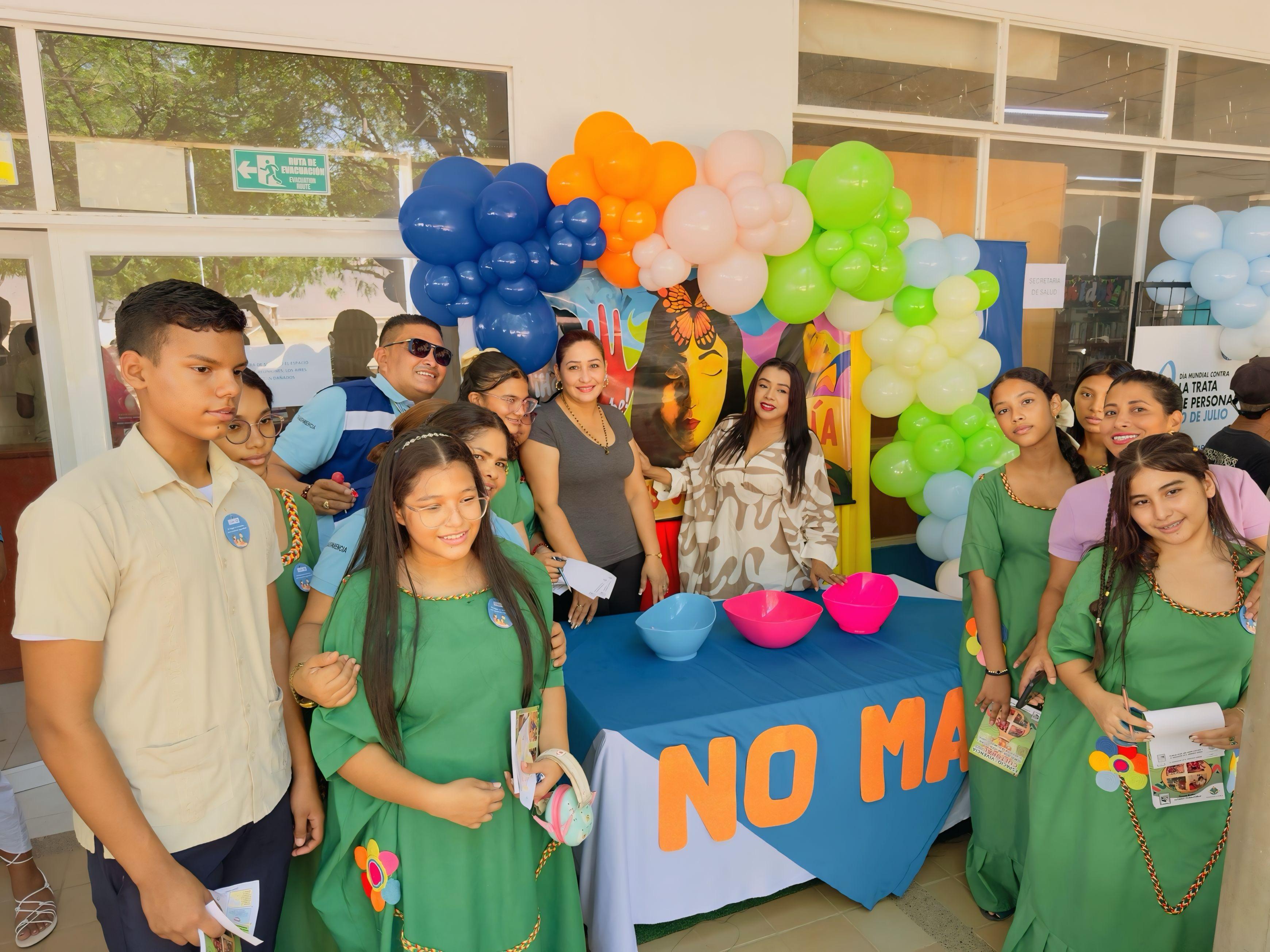 El miércoles 30 de julio de 2025, un grupo de estudiantes de grado noveno de la Institución Educativa Escuela Normal Superior Indígena de Uribia participó activamente en la feria interinstitucional “Por la Libertad: Unidos Contra la Trata de Personas”, evento organizado por la Subsecretaría de Desarrollo Social, de la Mujer y Población Vulnerable del municipio de Uribia.