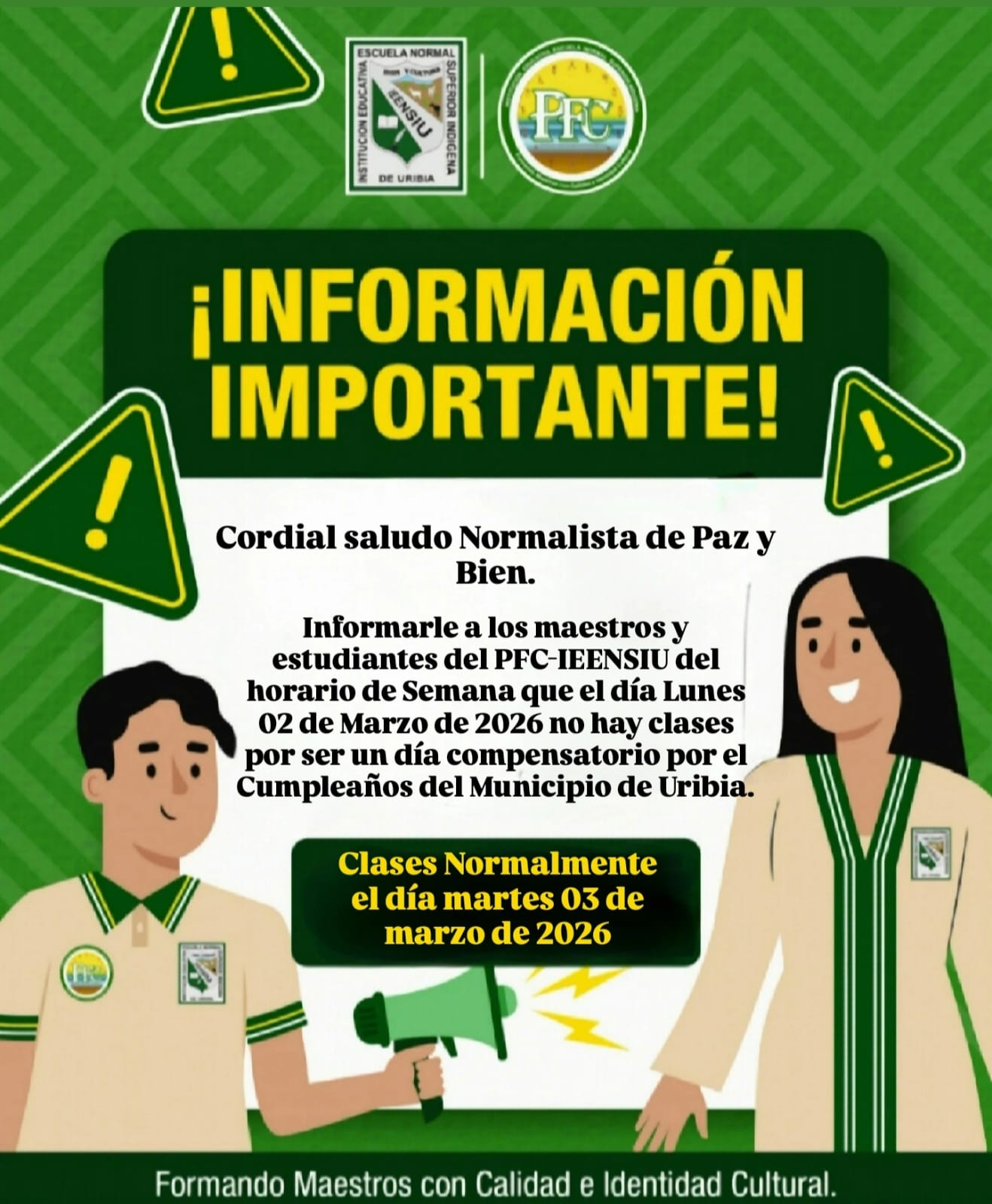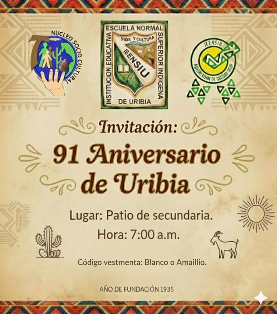 La Institución Educativa Escuela Normal Superior Indígena de Uribia invita a toda la comunidad...